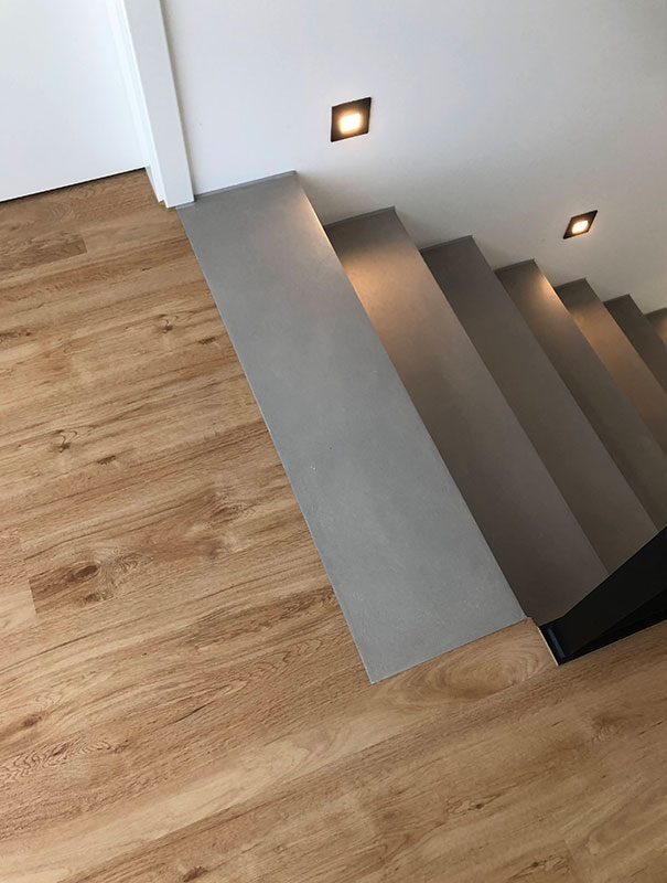 Die nahtlosen Oberflächen verleihen jeder Treppe ein exklusives, zeitloses Design und bieten gleichzeitig eine pflegeleichte Lösung – kein Schmutz in den Fugen, keine Abnutzung durch lose Kanten.